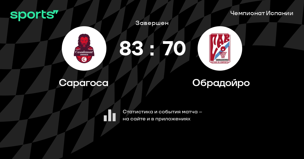 В прошедшем матче в рамках турнира Чемпионат Испании состоялась встреча команд Сарагоса - Обрадойро в городе Zaragoza на стадионе Príncipe Felipe Arena