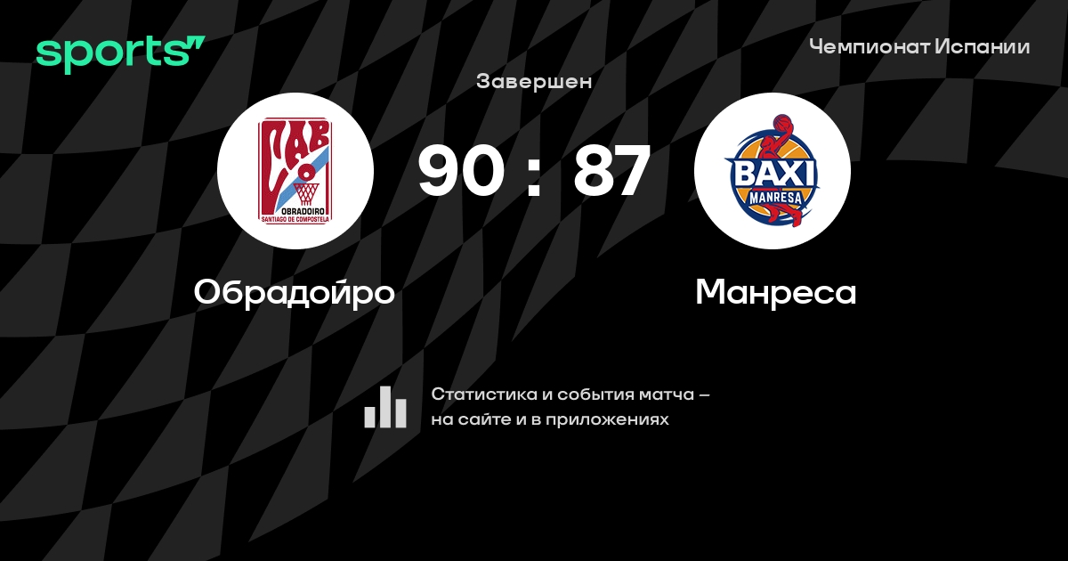 В прошедшем матче в рамках турнира Чемпионат Испании состоялась встреча команд Обрадойро - Манреса в городе Santiago de Compostela на стадионе Pabellón Multiusos Fontes do Sar