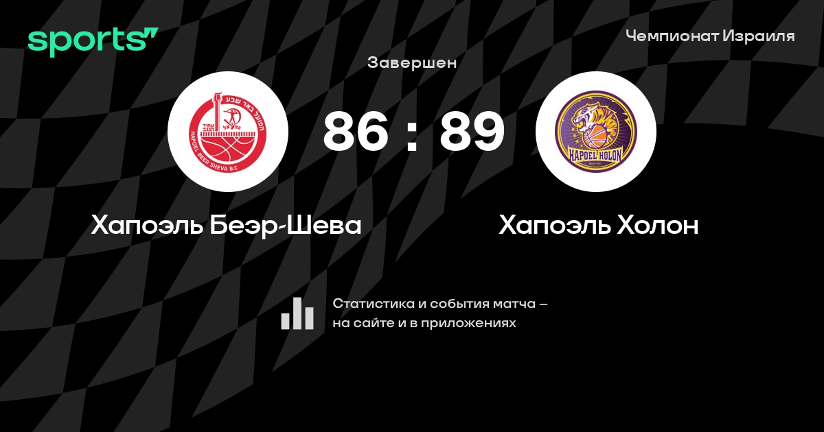 В прошедшем матче в рамках турнира Чемпионат Израиля состоялась встреча команд Хапоэль Беэр-Шева - Хапоэль Холон в городе Be'er Sheva на стадионе Conch Arena