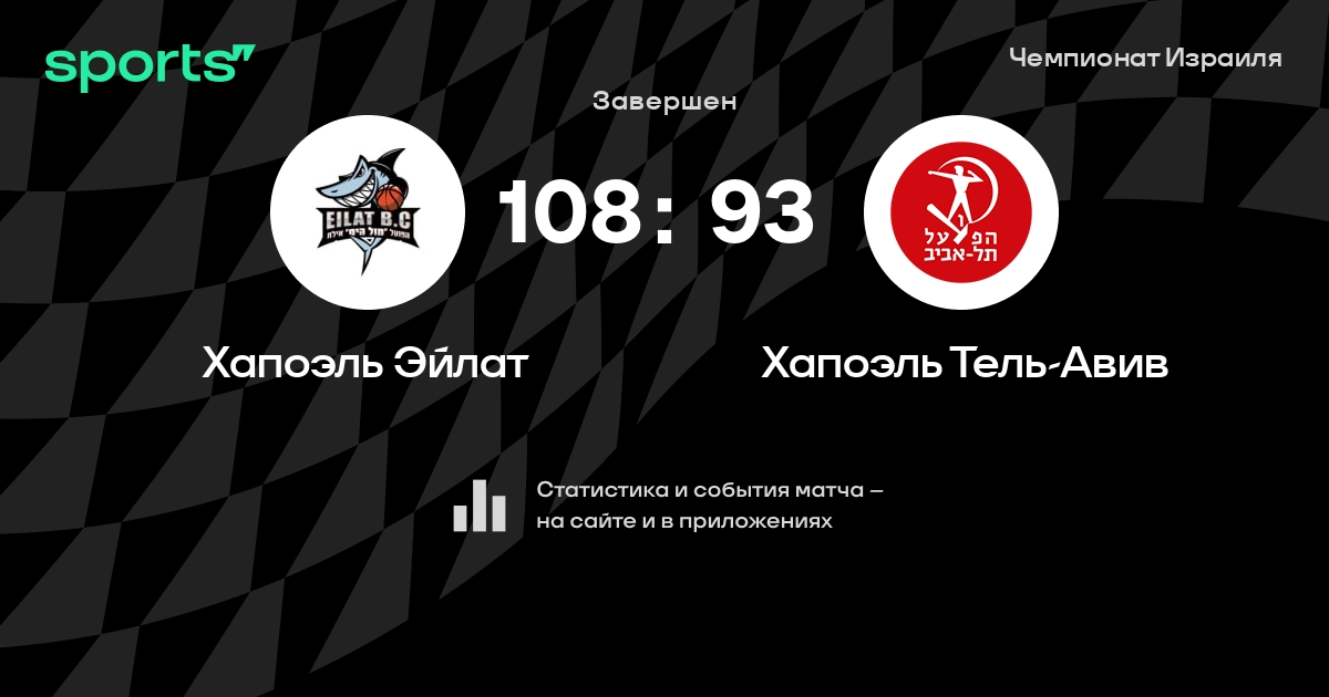 В прошедшем матче в рамках турнира Чемпионат Израиля состоялась встреча команд Хапоэль Эйлат - Хапоэль Тель-Авив в городе на стадионе Begin Eilat Sports Hall
