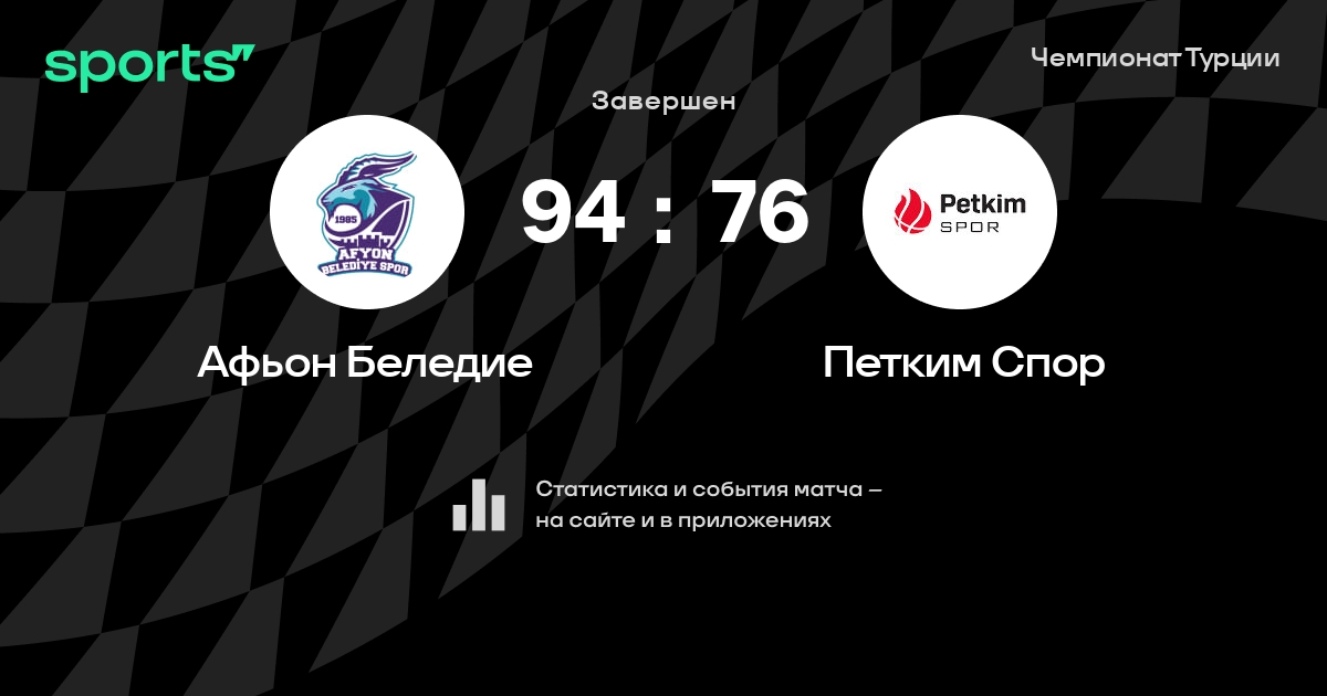 В прошедшем матче в рамках турнира Чемпионат Турции состоялась встреча команд Афьон Беледие - Петким Спор в городе Afyonkarahisar на стадионе Prof. Dr. Veysel Eroğlu Spor Salonu