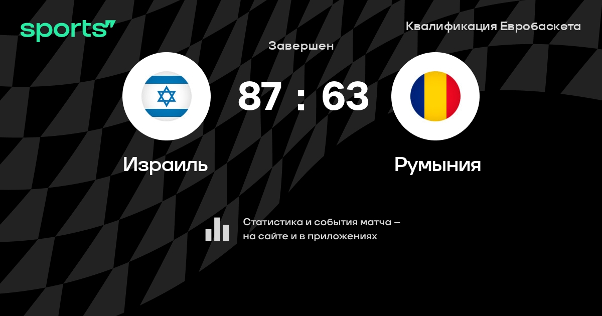 В прошедшем матче в рамках турнира Квалификация Евробаскета состоялась встреча команд Израиль - Румыния в городе Tel Aviv на стадионе Drive in Arena