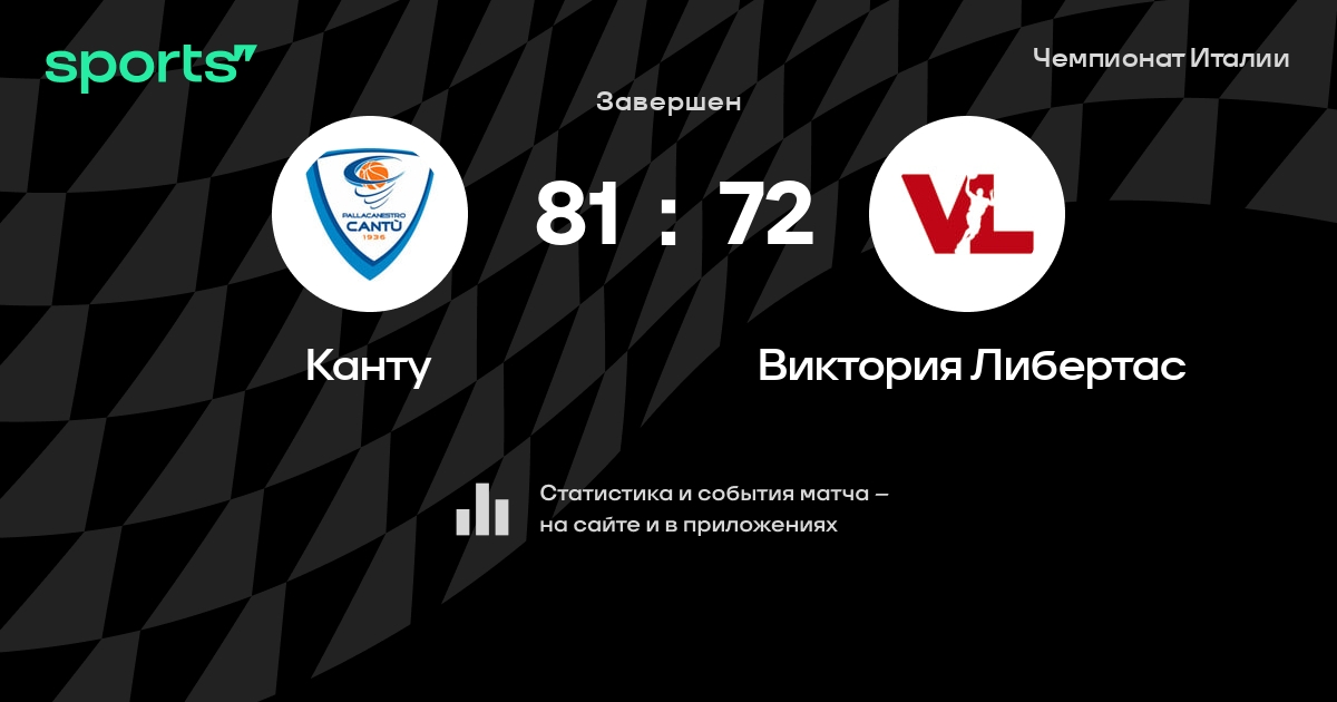 В прошедшем матче в рамках турнира Чемпионат Италии состоялась встреча команд Канту - Виктория Либертас в городе на стадионе PalaBancoDesio