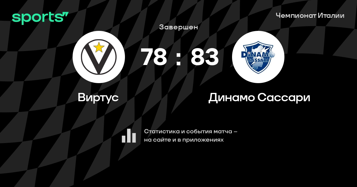 В прошедшем матче в рамках турнира Чемпионат Италии состоялась встреча команд Виртус - Динамо Сассари в городе Болонья (Италия) на стадионе Виртус Арена (вместимость - 9980)