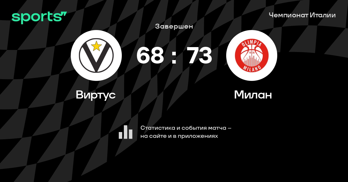 В прошедшем матче в рамках турнира Чемпионат Италии состоялась встреча команд Виртус - Милан в городе Болонья (Италия) на стадионе Виртус Арена (вместимость - 9980)