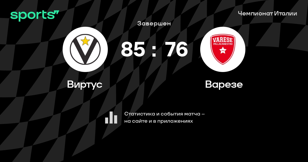 В прошедшем матче в рамках турнира Чемпионат Италии состоялась встреча команд Виртус - Варезе в городе Болонья (Италия) на стадионе Виртус Арена (вместимость - 9980)