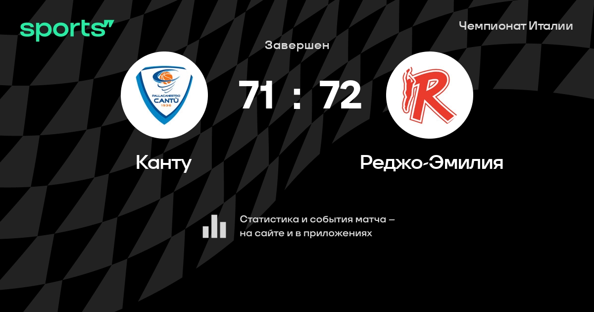 В прошедшем матче в рамках турнира Чемпионат Италии состоялась встреча команд Канту - Реджо-Эмилия в городе на стадионе PalaBancoDesio