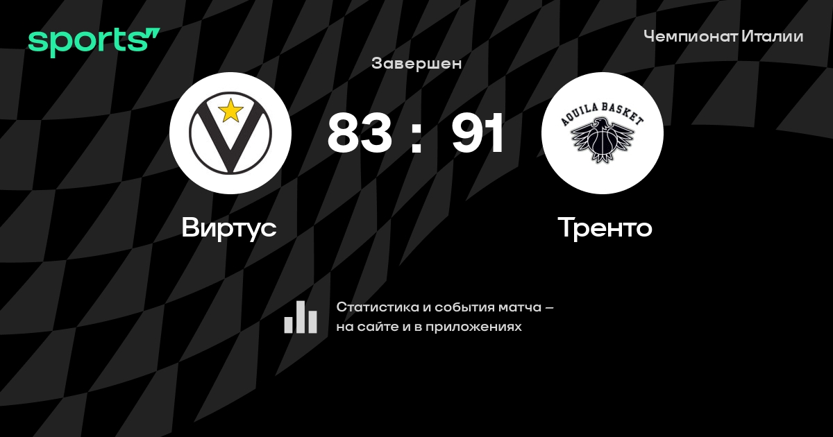 В прошедшем матче в рамках турнира Чемпионат Италии состоялась встреча команд Виртус - Тренто в городе Болонья (Италия) на стадионе Виртус Арена (вместимость - 9980)