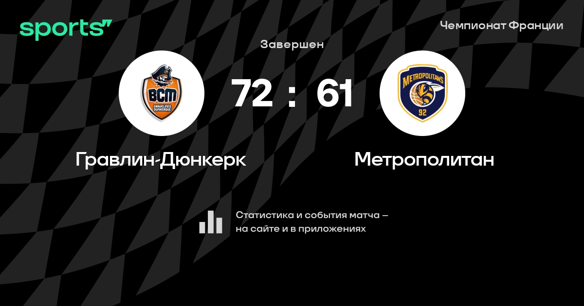 В прошедшем матче в рамках турнира Чемпионат Франции состоялась встреча команд Гравлин-Дюнкерк - Метрополитан в городе на стадионе Sportica