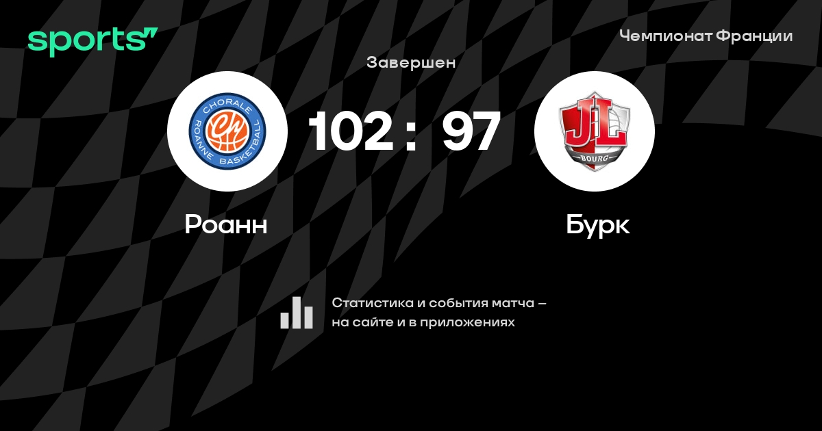 В прошедшем матче в рамках турнира Чемпионат Франции состоялась встреча команд Роанн - Бурк в городе на стадионе Halle André-Vacheresse