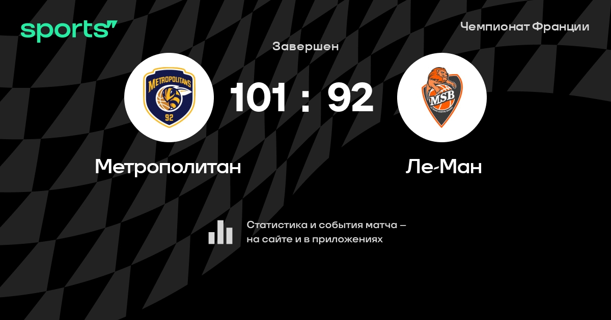 В прошедшем матче в рамках турнира Чемпионат Франции состоялась встреча команд Метрополитан - Ле-Ман в городе на стадионе Palais des Sports Marcel Cerdan