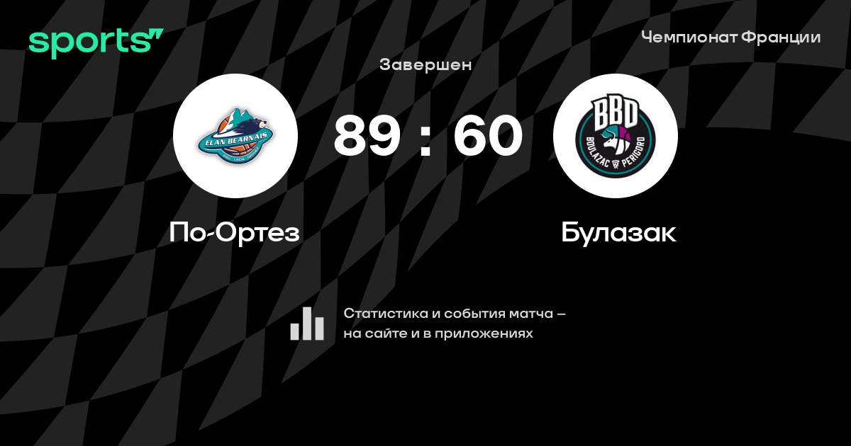 В прошедшем матче в рамках турнира Чемпионат Франции состоялась встреча команд По-Ортез - Булазак в городе Nanterre на стадионе Palais des Sports