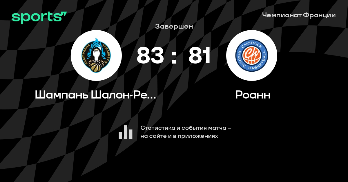 В прошедшем матче в рамках турнира Чемпионат Франции состоялась встреча команд Шампань Шалон-Реймс - Роанн в городе на стадионе Stade Pierre-de-Coubertin