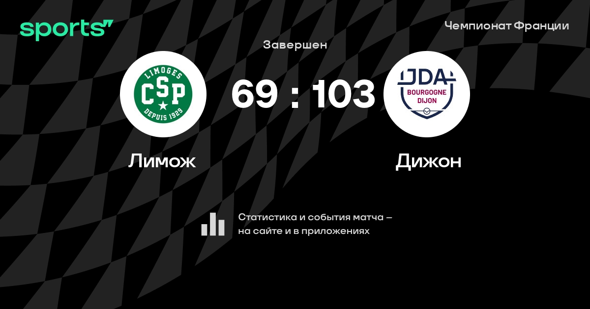 В прошедшем матче в рамках турнира Чемпионат Франции состоялась встреча команд Лимож - Дижон в городе на стадионе Palais des sports de Beaublanc