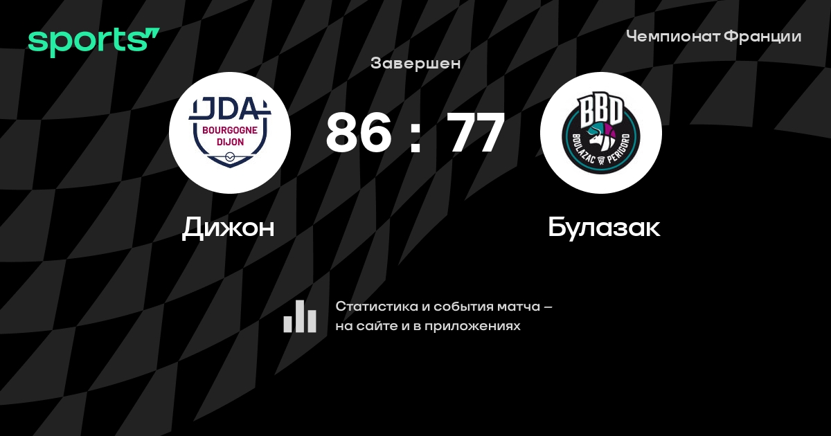 В прошедшем матче в рамках турнира Чемпионат Франции состоялась встреча команд Дижон - Булазак в городе на стадионе Palais des Sports Jean-Michel Geoffroy