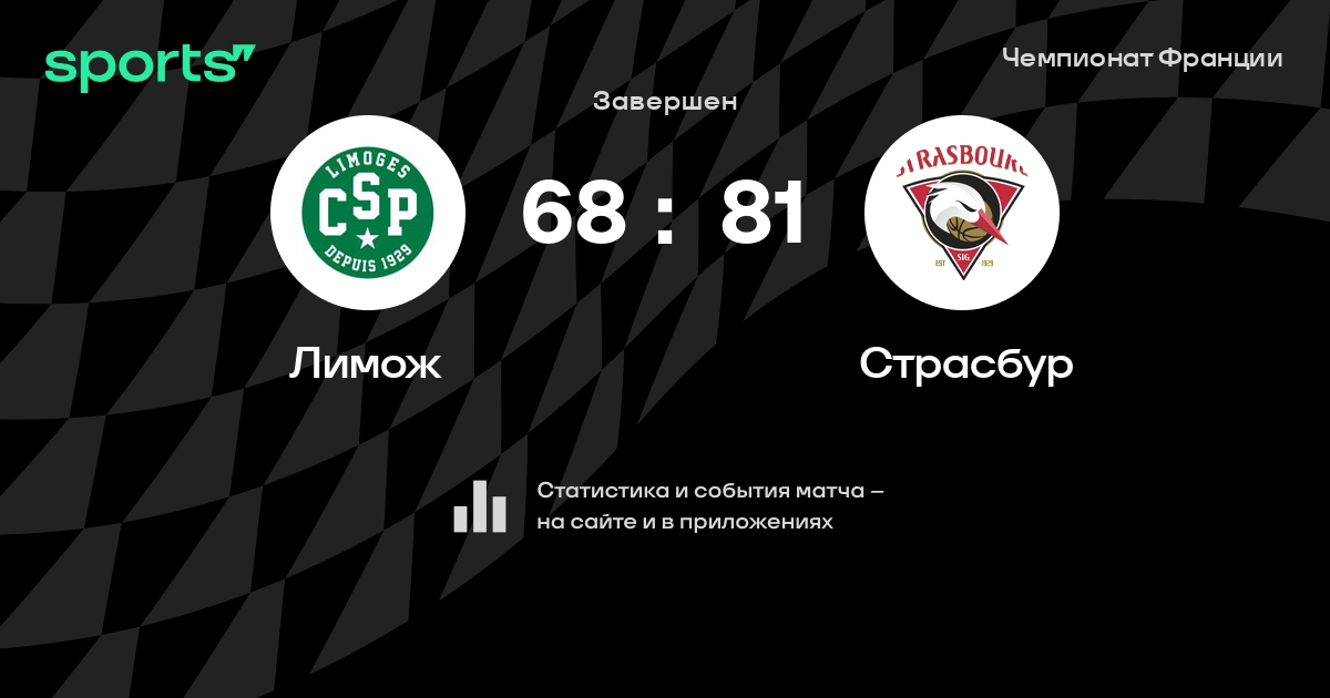 В прошедшем матче в рамках турнира Чемпионат Франции состоялась встреча команд Лимож - Страсбур в городе на стадионе Palais des sports de Beaublanc