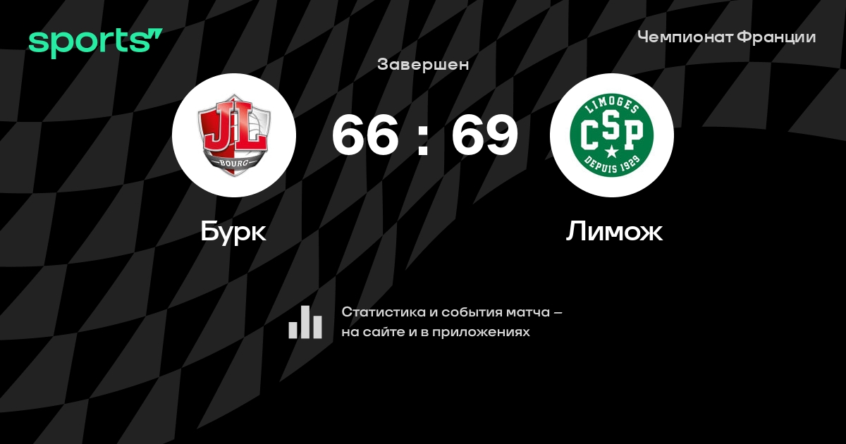 В прошедшем матче в рамках турнира Чемпионат Франции состоялась встреча команд Бурк - Лимож в городе на стадионе Ekinox