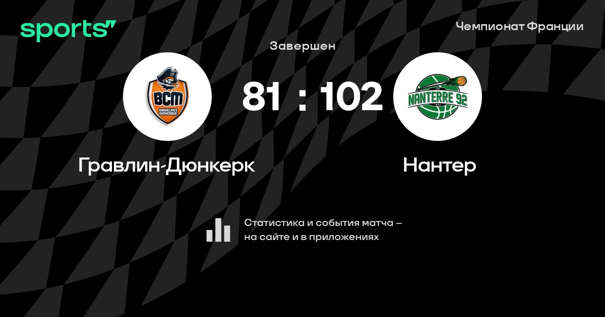 В прошедшем матче в рамках турнира Чемпионат Франции состоялась встреча команд Гравлин-Дюнкерк - Нантер в городе на стадионе Sportica