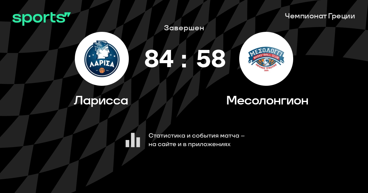 В прошедшем матче в рамках турнира Чемпионат Греции состоялась встреча команд Ларисса - Месолонгион в городе на стадионе Kleisto Gymnastirio Neapolis Larisas