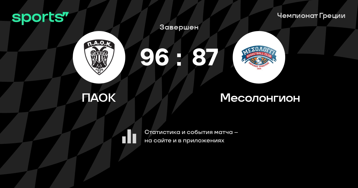 В прошедшем матче в рамках турнира Чемпионат Греции состоялась встреча команд ПАОК - Месолонгион в городе на стадионе PAOK Sports Arena