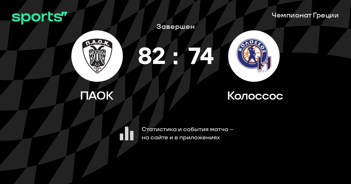 В прошедшем матче в рамках турнира Чемпионат Греции состоялась встреча команд ПАОК - Колоссос в городе на стадионе Kleisto Gipedo PAOK