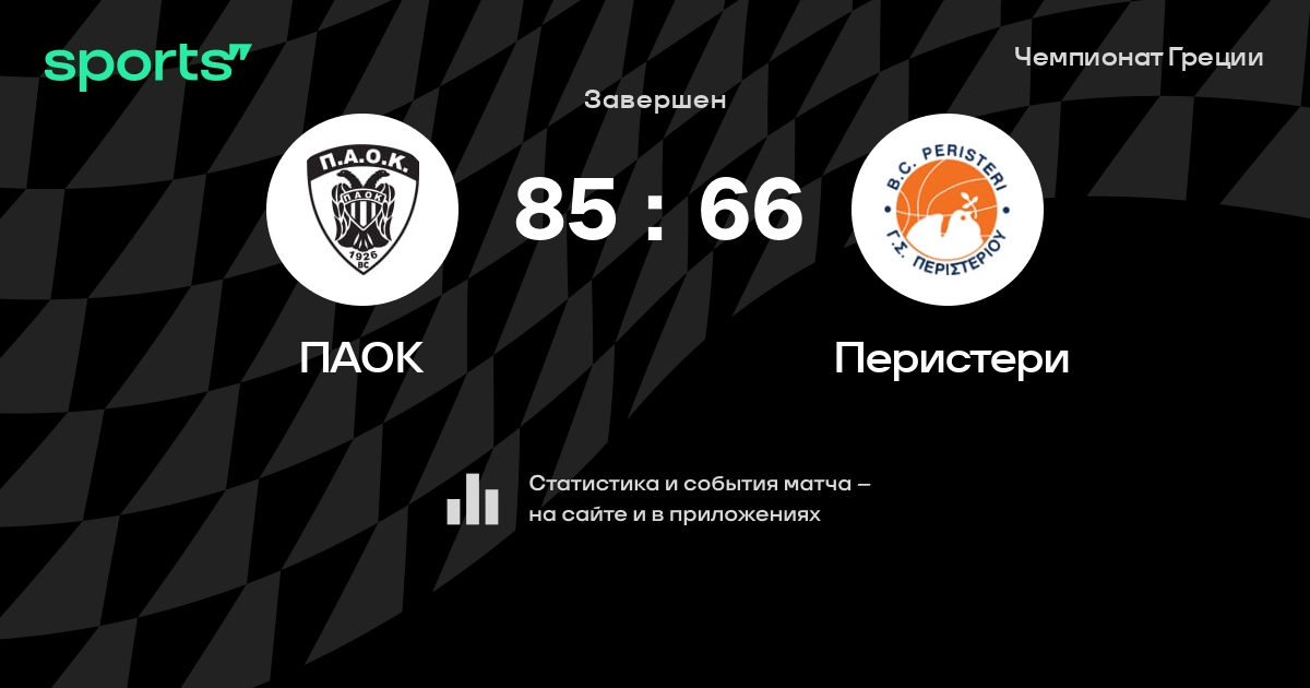 В прошедшем матче в рамках турнира Чемпионат Греции состоялась встреча команд ПАОК - Перистери в городе на стадионе Kleisto Gipedo PAOK