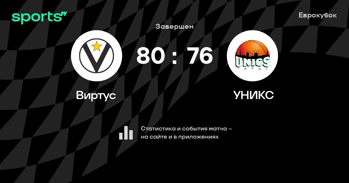 В прошедшем матче в рамках турнира Еврокубок (Полуфинал) состоялась встреча команд Виртус - УНИКС в городе Болонья (Италия) на стадионе Виртус Арена (вместимость - 9980)