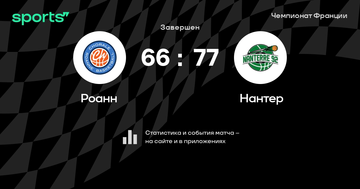В прошедшем матче в рамках турнира Чемпионат Франции состоялась встреча команд Роанн - Нантер в городе на стадионе Halle André-Vacheresse
