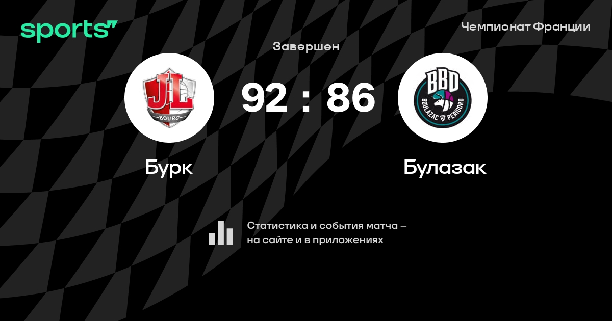 В прошедшем матче в рамках турнира Чемпионат Франции состоялась встреча команд Бурк - Булазак в городе на стадионе Ekinox