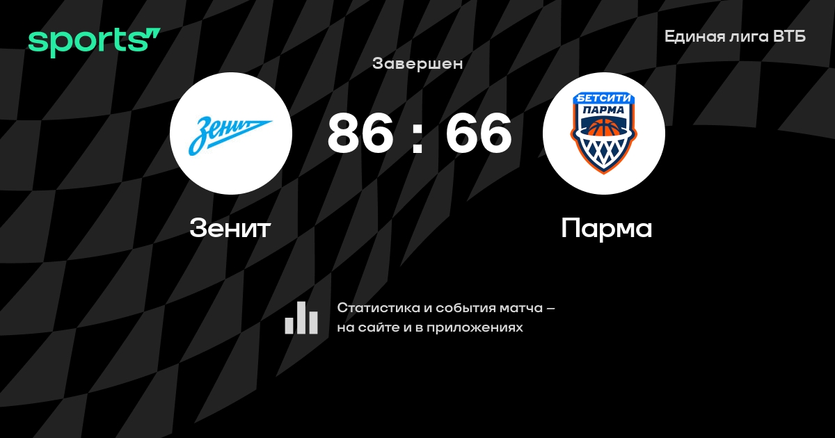 В прошедшем матче в рамках турнира Единая лига ВТБ (Четвертьфинал) состоялась встреча команд Зенит - Парма в городе Санкт-Петербург (Россия) на стадионе КСК Арена (вместимость - 7120)