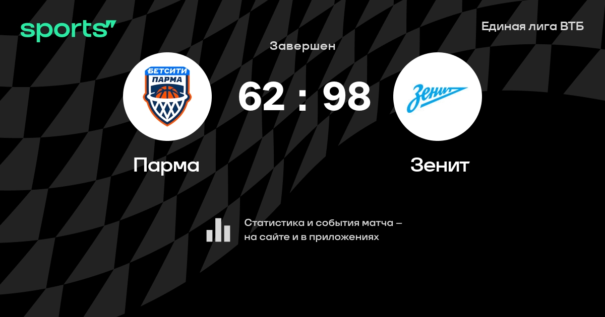 В прошедшем матче в рамках турнира Единая лига ВТБ (Четвертьфинал) состоялась встреча команд Парма - Зенит в городе Пермь (Россия) на стадионе УДС Молот (вместимость - 7000)