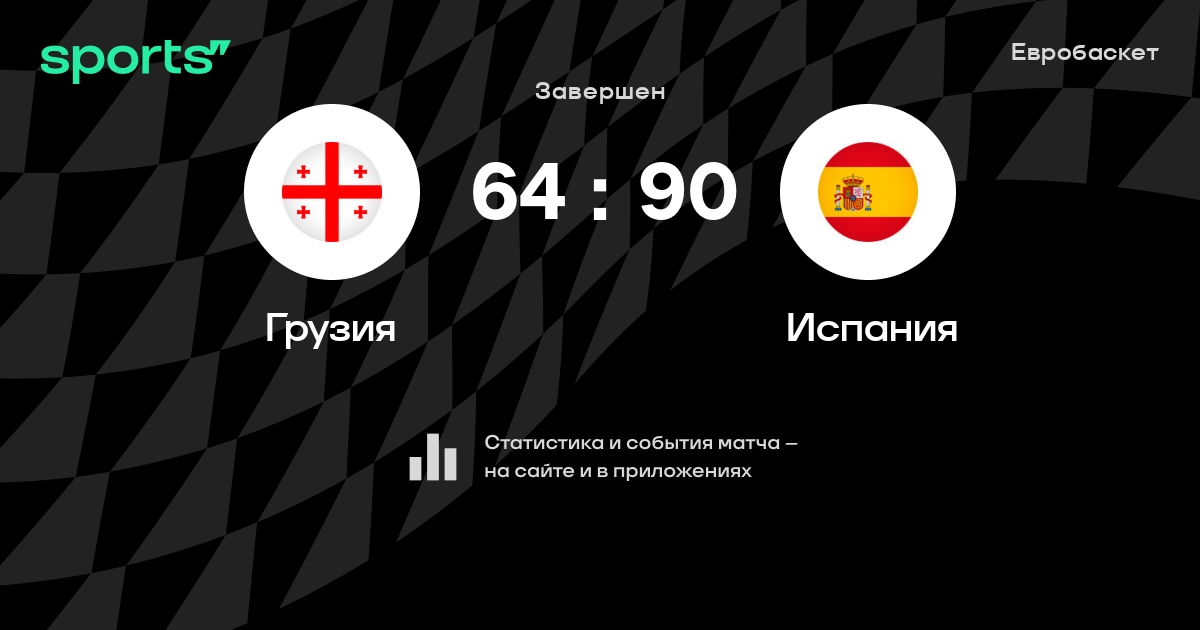 В прошедшем матче в рамках турнира Евробаскет состоялась встреча команд Грузия - Испания в городе Тбилиси (Грузия) на стадионе Дворец спорта (вместимость - 9700)