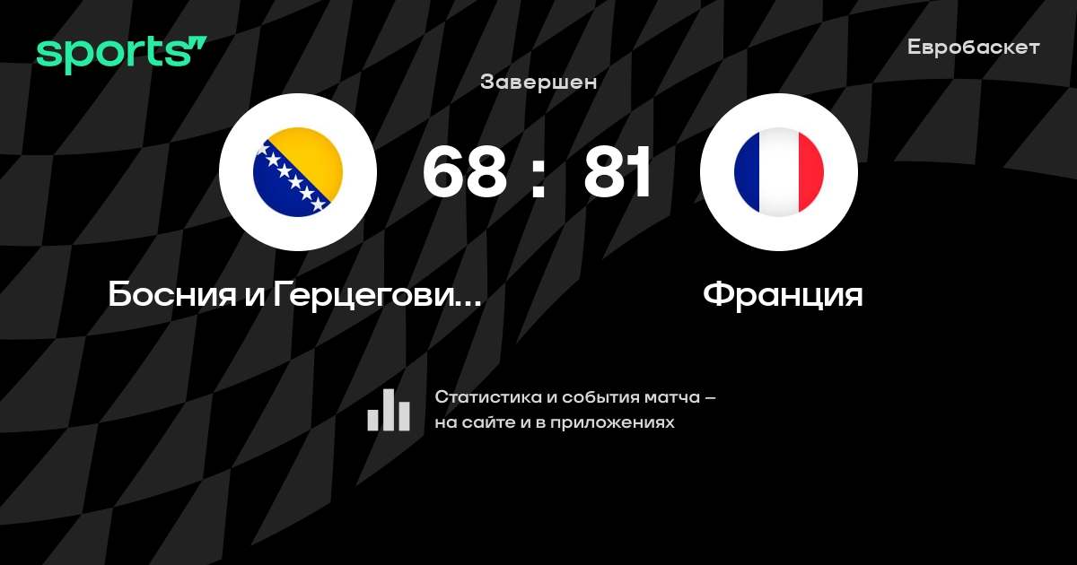 В прошедшем матче в рамках турнира Евробаскет состоялась встреча команд Босния и Герцеговина - Франция в городе Кельн (Германия) на стадионе Ланксесс-Арена (вместимость - 20000)