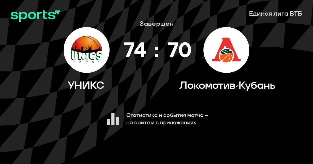 В прошедшем матче в рамках турнира Единая лига ВТБ (Полуфинал) состоялась встреча команд УНИКС - Локомотив-Кубань в городе Казань (Россия) на стадионе Баскет-холл (вместимость - 7000)