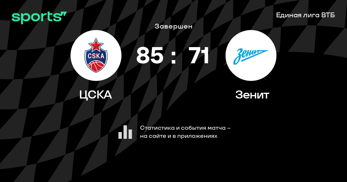 В прошедшем матче в рамках турнира Единая лига ВТБ (Полуфинал) состоялась встреча команд ЦСКА - Зенит в городе Москва (Россия) на стадионе УСК ЦСКА им. А.Я. Гомельского (вместимость - 4500)