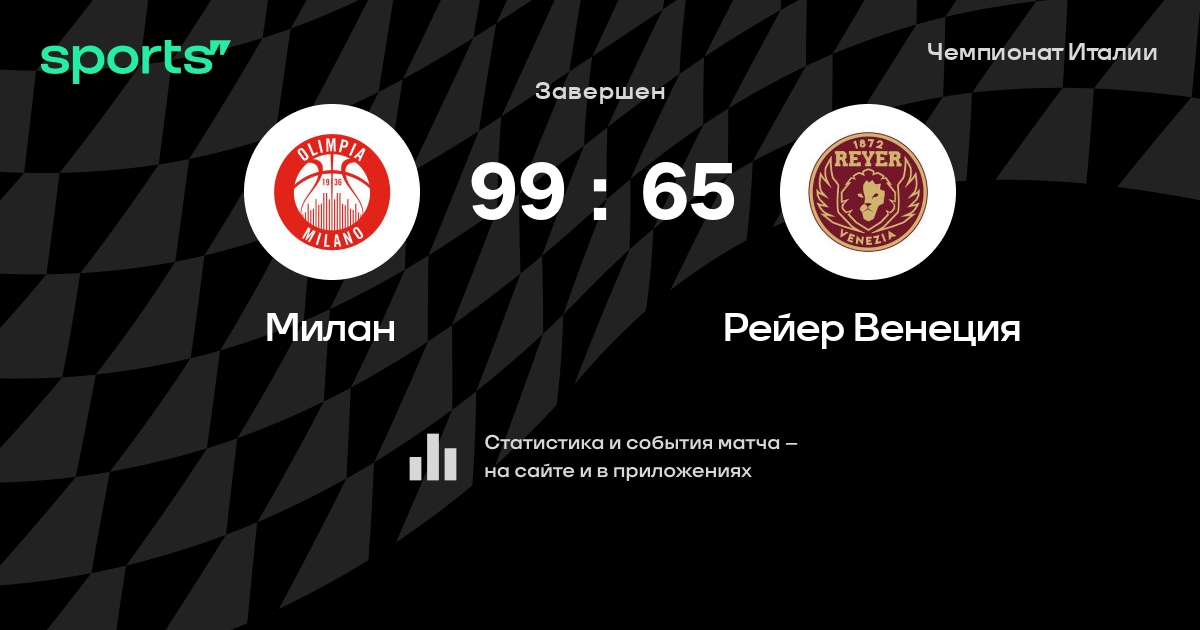 В прошедшем матче в рамках турнира Чемпионат Италии (Полуфинал) состоялась встреча команд Милан - Рейер Венеция в городе Ассаго (Италия) на стадионе Униполь Форум (вместимость - 11200)