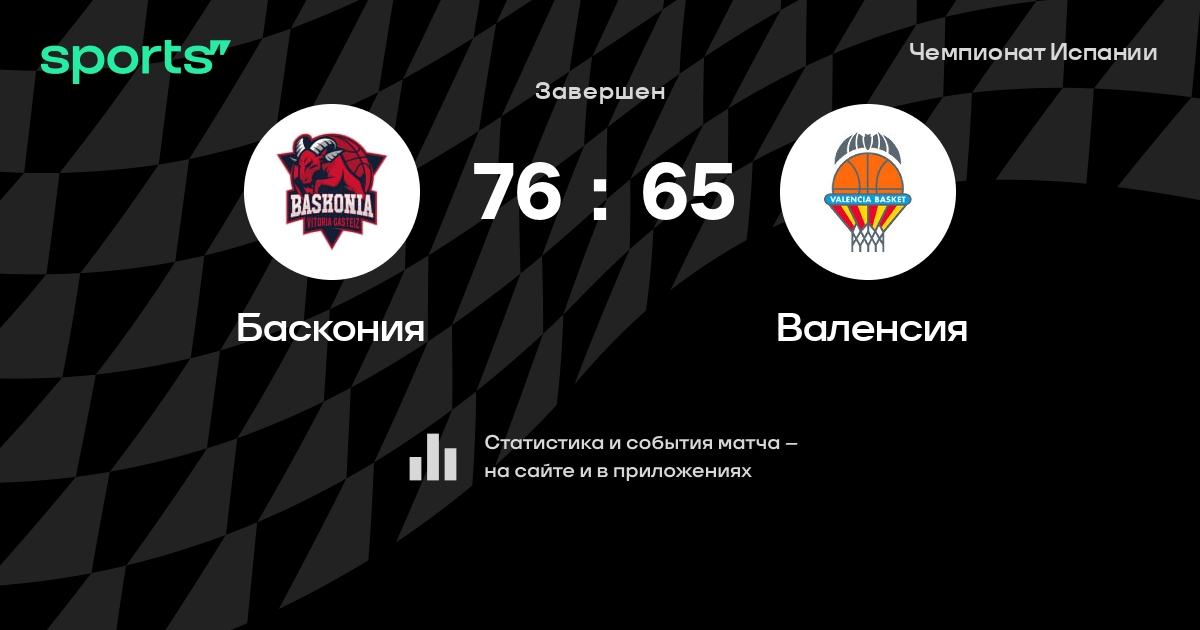 В прошедшем матче в рамках турнира Чемпионат Испании (Четвертьфинал) состоялась встреча команд Баскония - Валенсия в городе Витория (Испания) на стадионе Фернандо Буэса Арена (вместимость - 9717)