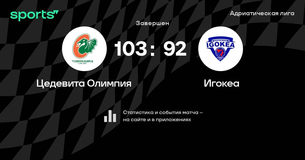 В прошедшем матче в рамках турнира Адриатическая лига состоялась встреча команд Цедевита Олимпия - Игокеа в городе на стадионе Dvorana Stožice