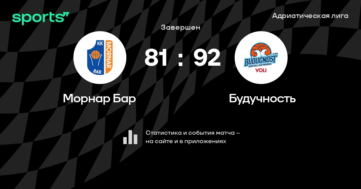 В прошедшем матче в рамках турнира Адриатическая лига (Полуфинал) состоялась встреча команд Морнар Бар - Будучность в городе на стадионе Topolica
