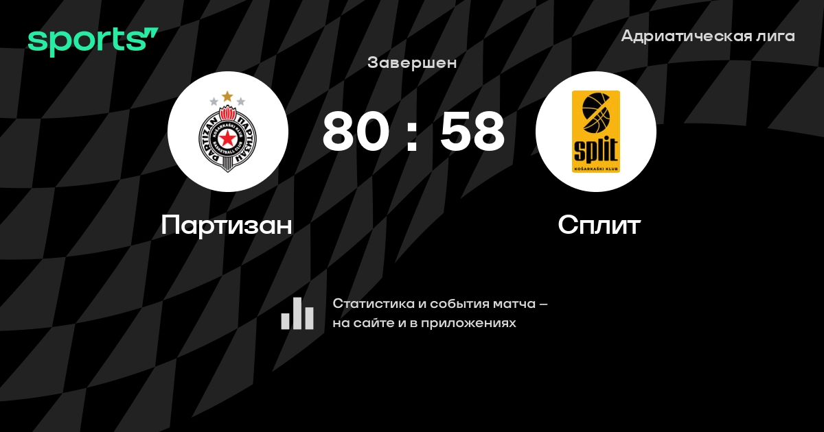 В прошедшем матче в рамках турнира Адриатическая лига состоялась встреча команд Партизан - Сплит в городе на стадионе Ranko Žeravica Sports Hall