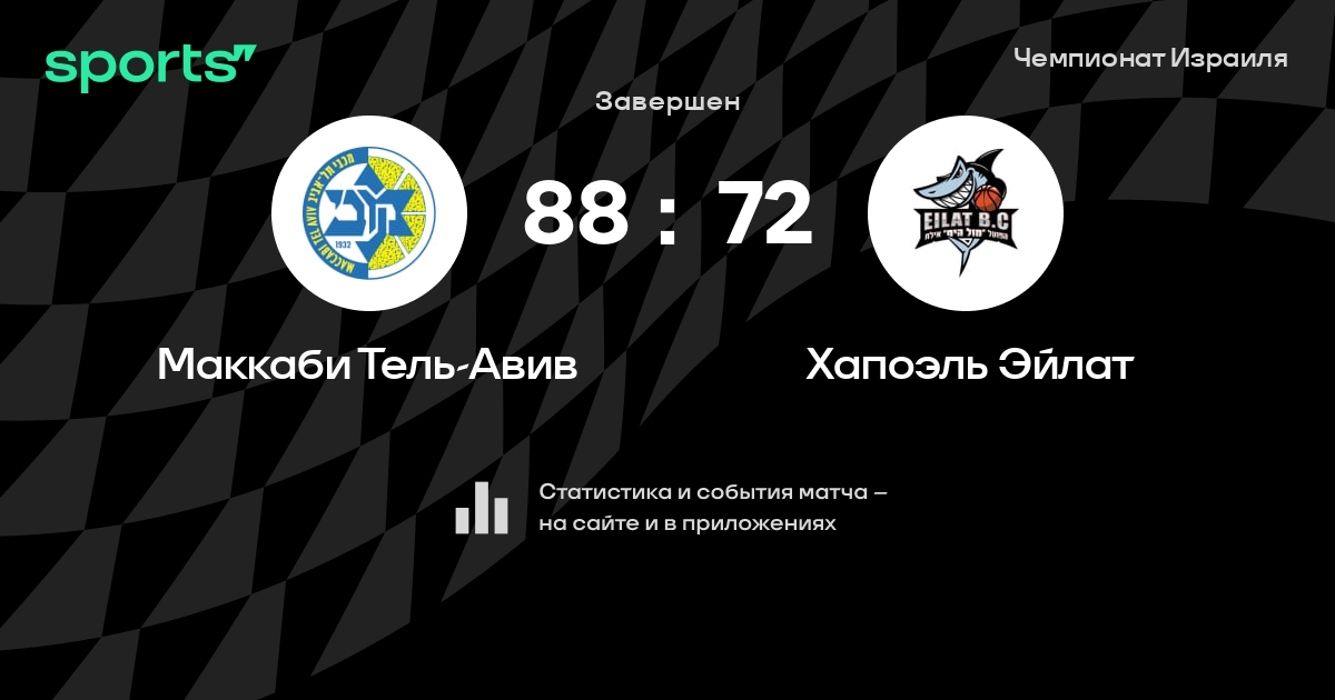 В прошедшем матче в рамках турнира Чемпионат Израиля (Полуфинал) состоялась встреча команд Маккаби Тель-Авив - Хапоэль Эйлат в городе Тель-Авив (Израиль) на стадионе Менора-Мивтахим Арена (вместимость - 11700)