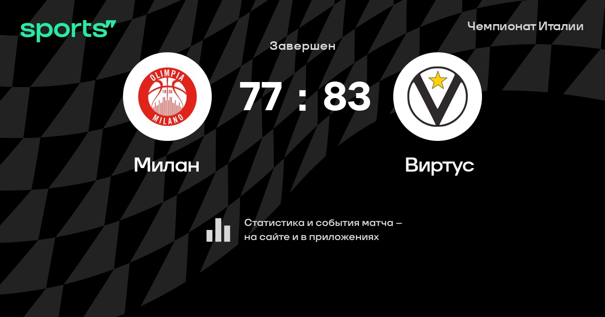 В прошедшем матче в рамках турнира Чемпионат Италии (Финал) состоялась встреча команд Милан - Виртус в городе Ассаго (Италия) на стадионе Униполь Форум (вместимость - 11200)