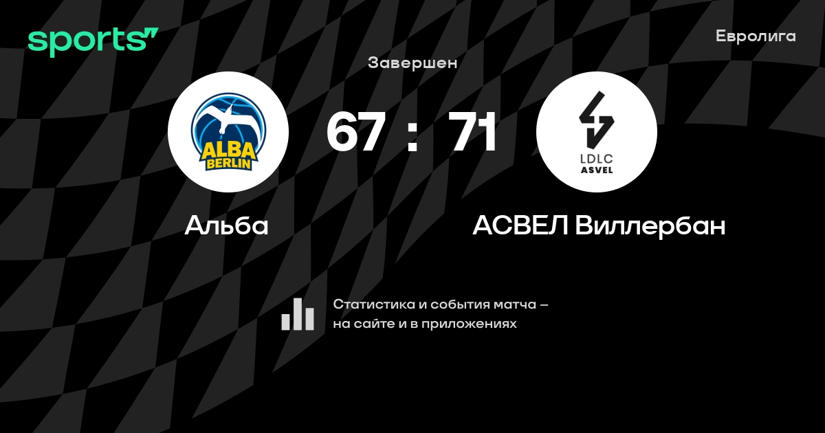 В прошедшем матче в рамках турнира Евролига состоялась встреча команд Альба - АСВЕЛ Виллербан в городе Берлин (Германия) на стадионе Убер Арена (вместимость - 16000)