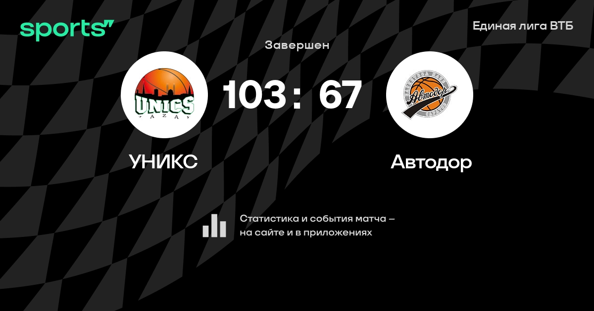 В прошедшем матче в рамках турнира Единая лига ВТБ состоялась встреча команд УНИКС - Автодор в городе Казань (Россия) на стадионе Баскет-холл (вместимость - 7000)