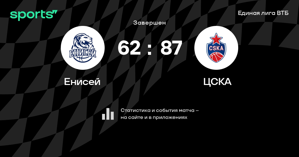 В прошедшем матче в рамках турнира Единая лига ВТБ состоялась встреча команд Енисей - ЦСКА в городе Красноярск (Россия) на стадионе Арена-Север