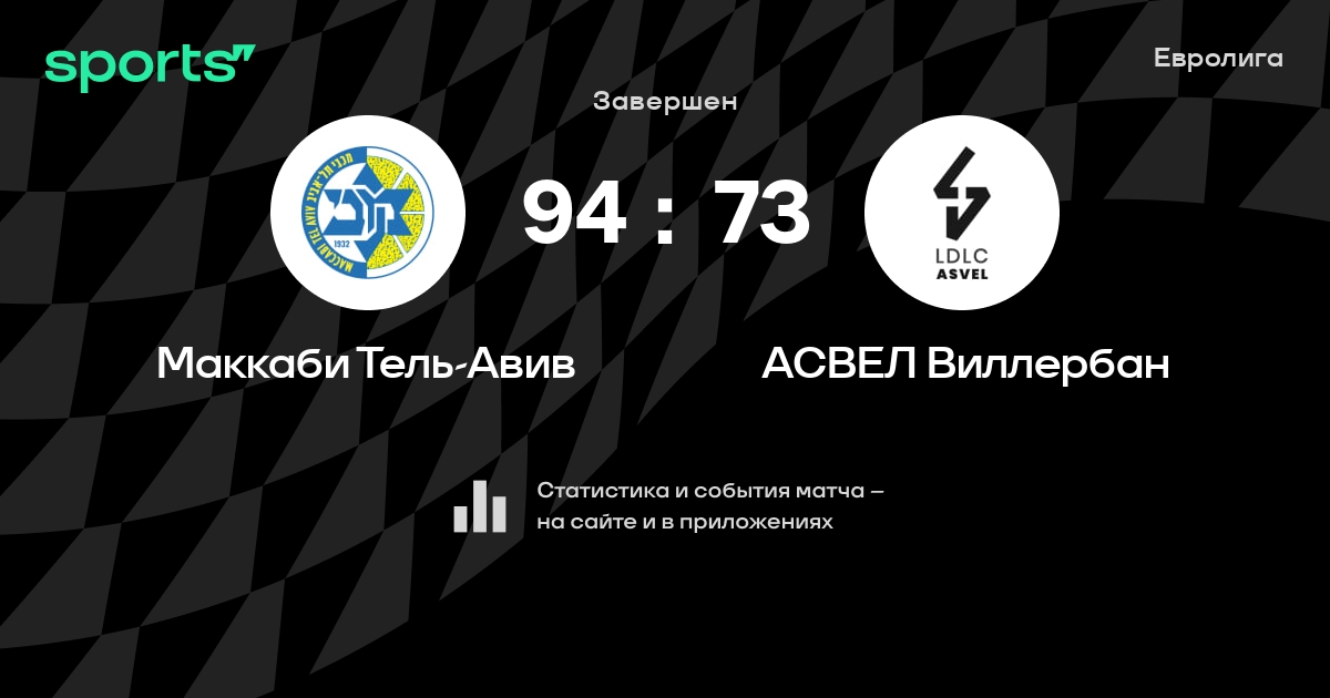 В прошедшем матче в рамках турнира Евролига состоялась встреча команд Маккаби Тель-Авив - АСВЕЛ Виллербан в городе Тель-Авив (Израиль) на стадионе Менора-Мивтахим Арена (вместимость - 11700)