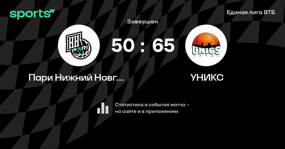 В прошедшем матче в рамках турнира Единая лига ВТБ состоялась встреча команд Пари Нижний Новгород - УНИКС в городе Нижний Новгород (Россия) на стадионе КРК Нагорный (вместимость - 5600)