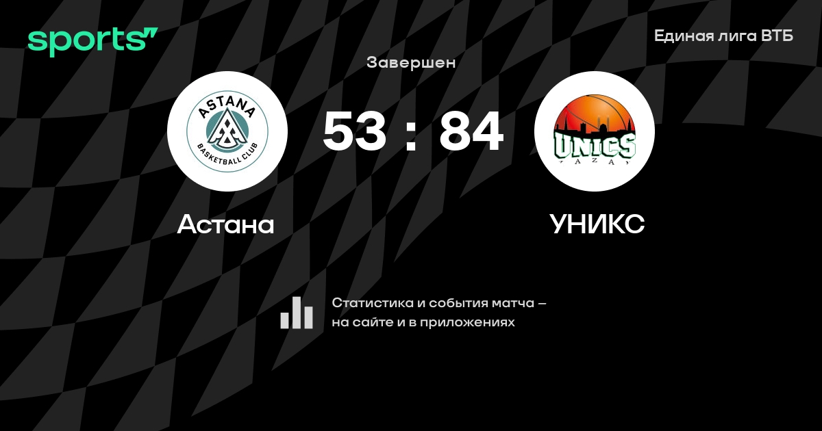 В прошедшем матче в рамках турнира Единая лига ВТБ состоялась встреча команд Астана - УНИКС в городе Нур-Султан (Казахстан) на стадионе Велотрек Сарыарка (вместимость - 8000)