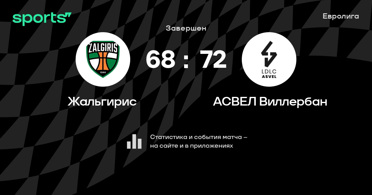 В прошедшем матче в рамках турнира Евролига состоялась встреча команд Жальгирис - АСВЕЛ Виллербан в городе Каунас (Литва) на стадионе Жальгирис Арена