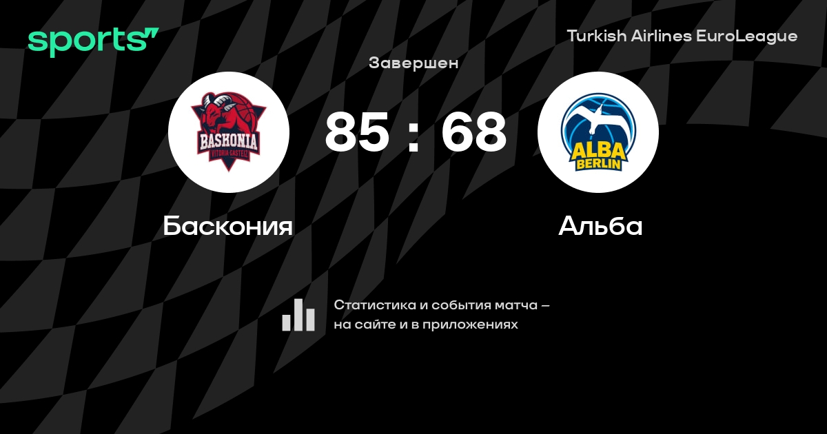 В прошедшем матче в рамках турнира Turkish Airlines EuroLeague состоялась встреча команд Баскония - Альба в городе Витория (Испания) на стадионе Фернандо Буэса Арена (вместимость - 9717)